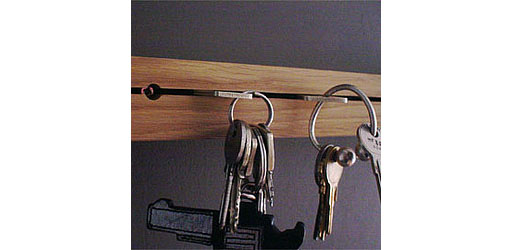 This wall mounted coatrack could also be used to manage all of your ‘hangable’ objects, like keys, jewelry, camera, etc. As a bonus, it looks really cool even just empty.