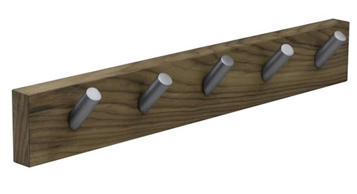 Natural Walnut veneer with satin steel pegs. Easily mounts to your wall with a hidden โFrench Cleatโย.